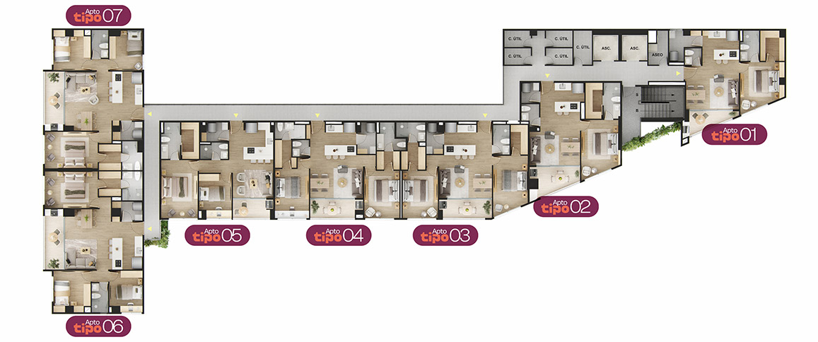 Los planos contenidos en esta pieza impresa son de carácter ilustrativo y de referencia. Incluyen elementos de ambientación y decoración que no hacen parte del producto final ofrecido. Las dimensiones, distribuciones, especificaciones, materiales, acabados y demás características representadas podrán estar sujetas a modificaciones durante el desarrollo del proyecto, sin que ello implique incumplimiento alguno. Son una representación gráfica elaborada por el arquitecto, y no constituyen necesariamente una representación exacta y definitiva del resultado final de la construcción.